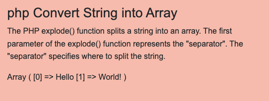 The first parameter of the explode() function represents the "separator". The "separator" specifies where to split the string.</p>