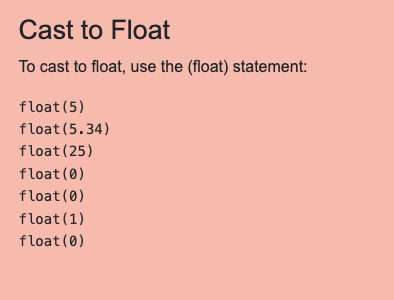 <h2>Cast to Float</h2>