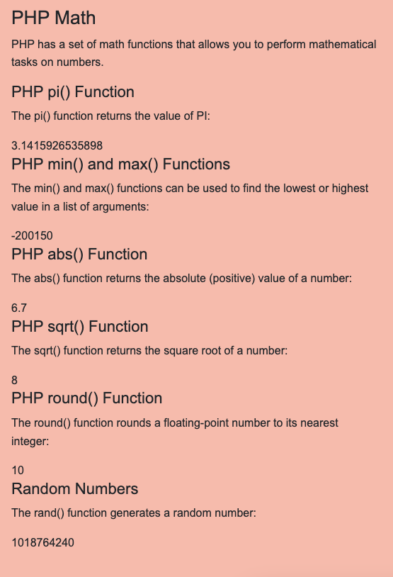 <h2>PHP Math</h2>