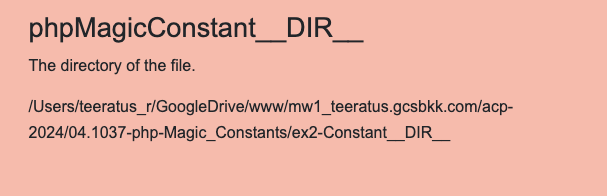 The directory of the file. If used inside an include, the directory of the included file is returned. This is equivalent to dirname(__FILE__). This directory name does not have a trailing slash unless it is the root directory. |