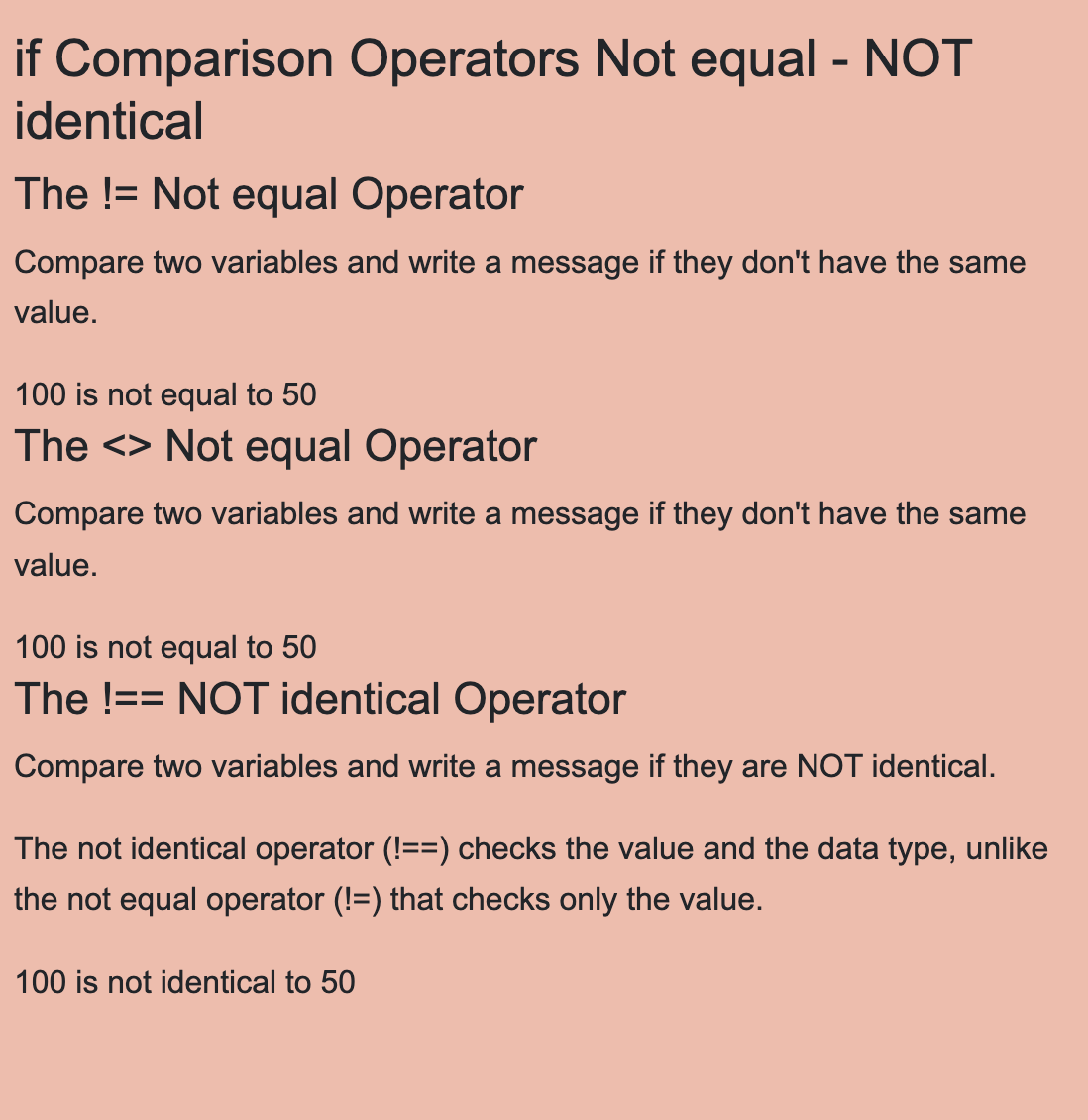 <h2>if Comparison Operators Not equal - NOT identical</h2>