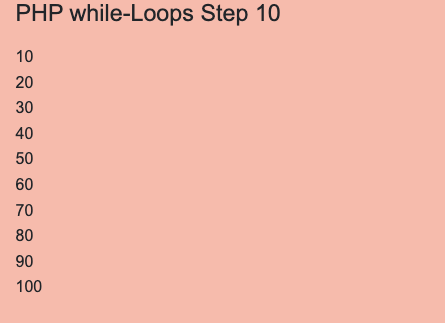 If you want the while loop count to 100, but only by each 10, you can increase the counter by 10 instead 1 in each iteration: