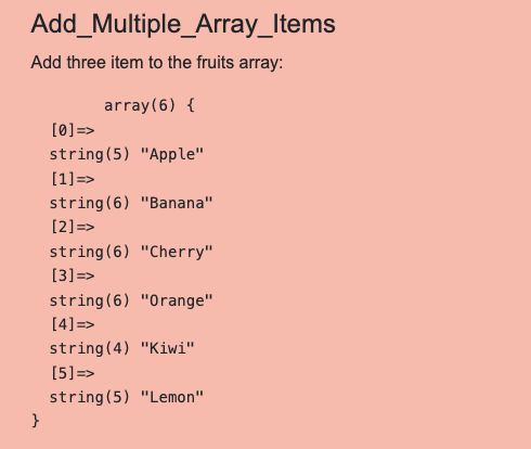 array_push($fruits, "Orange", "Kiwi", "Lemon");