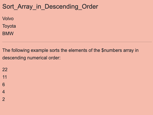 <p>The following example sorts the elements of the $numbers array in descending numerical order:</p>
