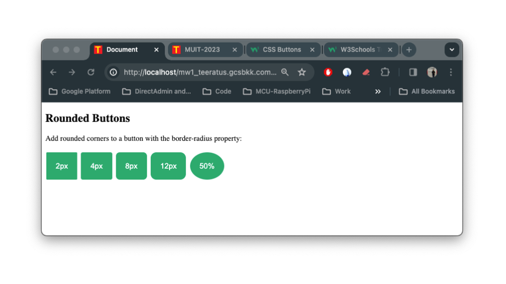 <p>Add rounded corners to a button with the border-radius property:</p>