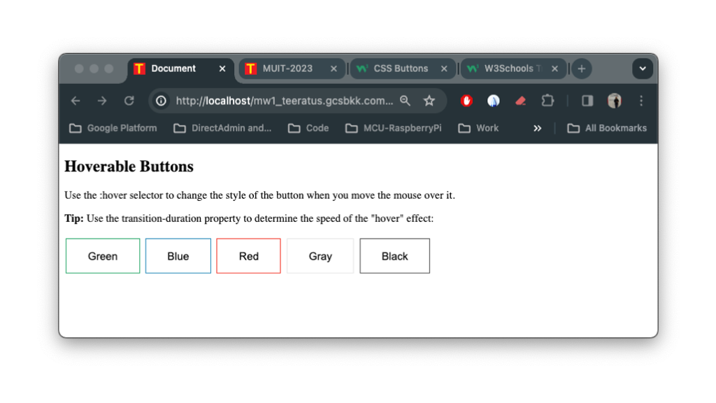 Use the :hover selector to change the style of a button when you move the mouse over it.