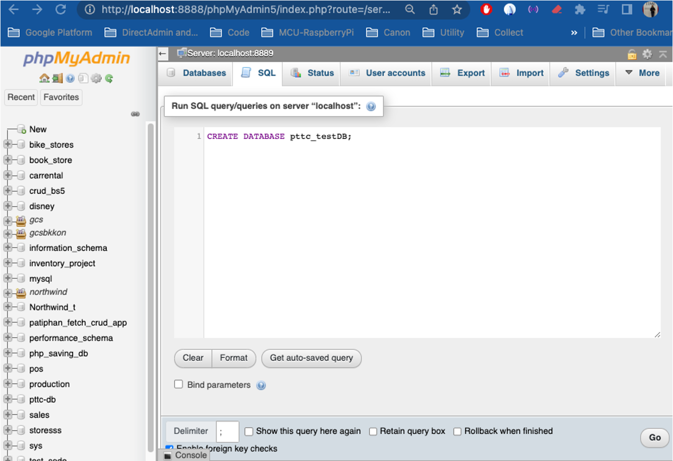CREATE DATABASE pttc_testDB;