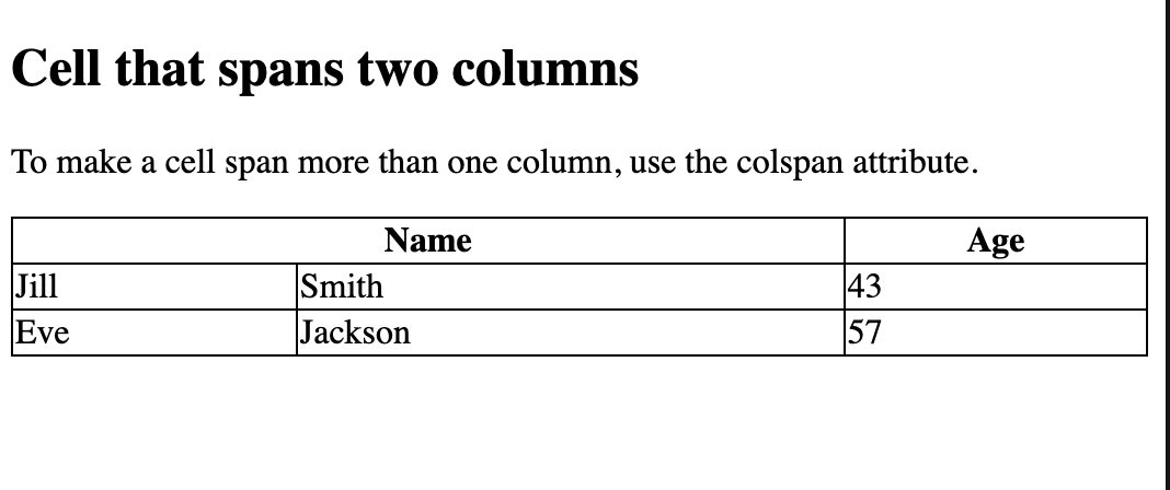 <p>To make a cell span more than one column, use the colspan attribute.</p>