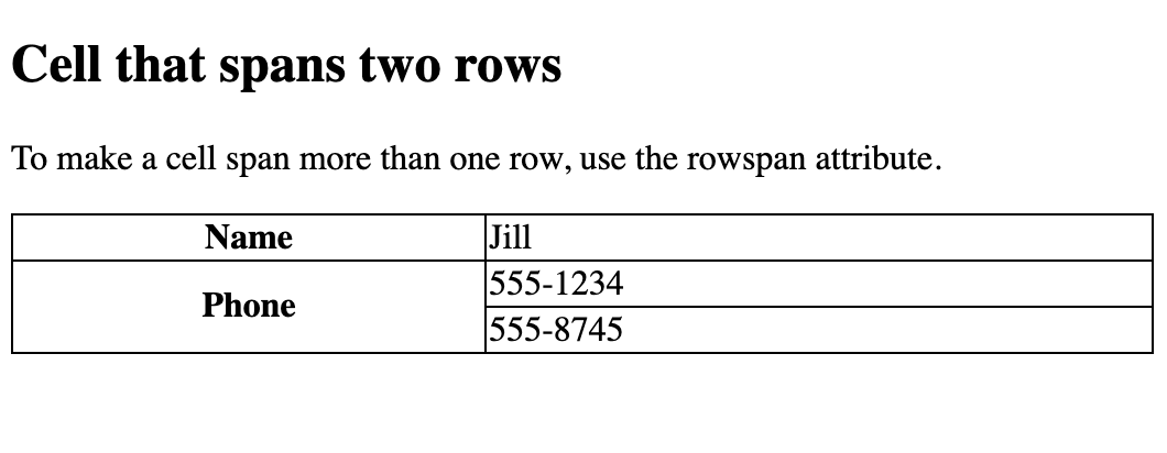 <p>To make a cell span more than one row, use the rowspan attribute.</p>