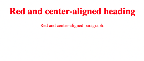 <p class="center">This paragraph will be red and center-aligned.</p>