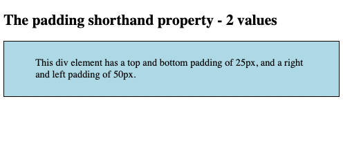 <div>This div element has a top and bottom padding of 25px, and a right and left padding of 50px.</div>