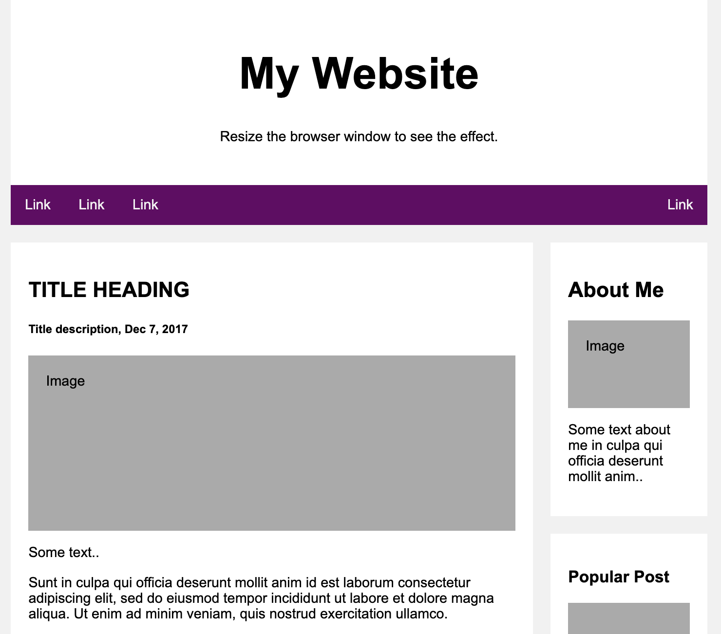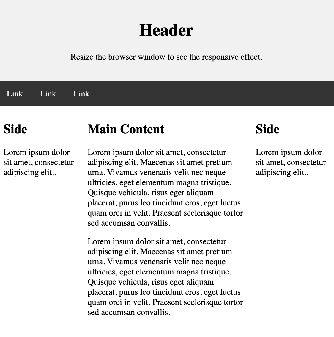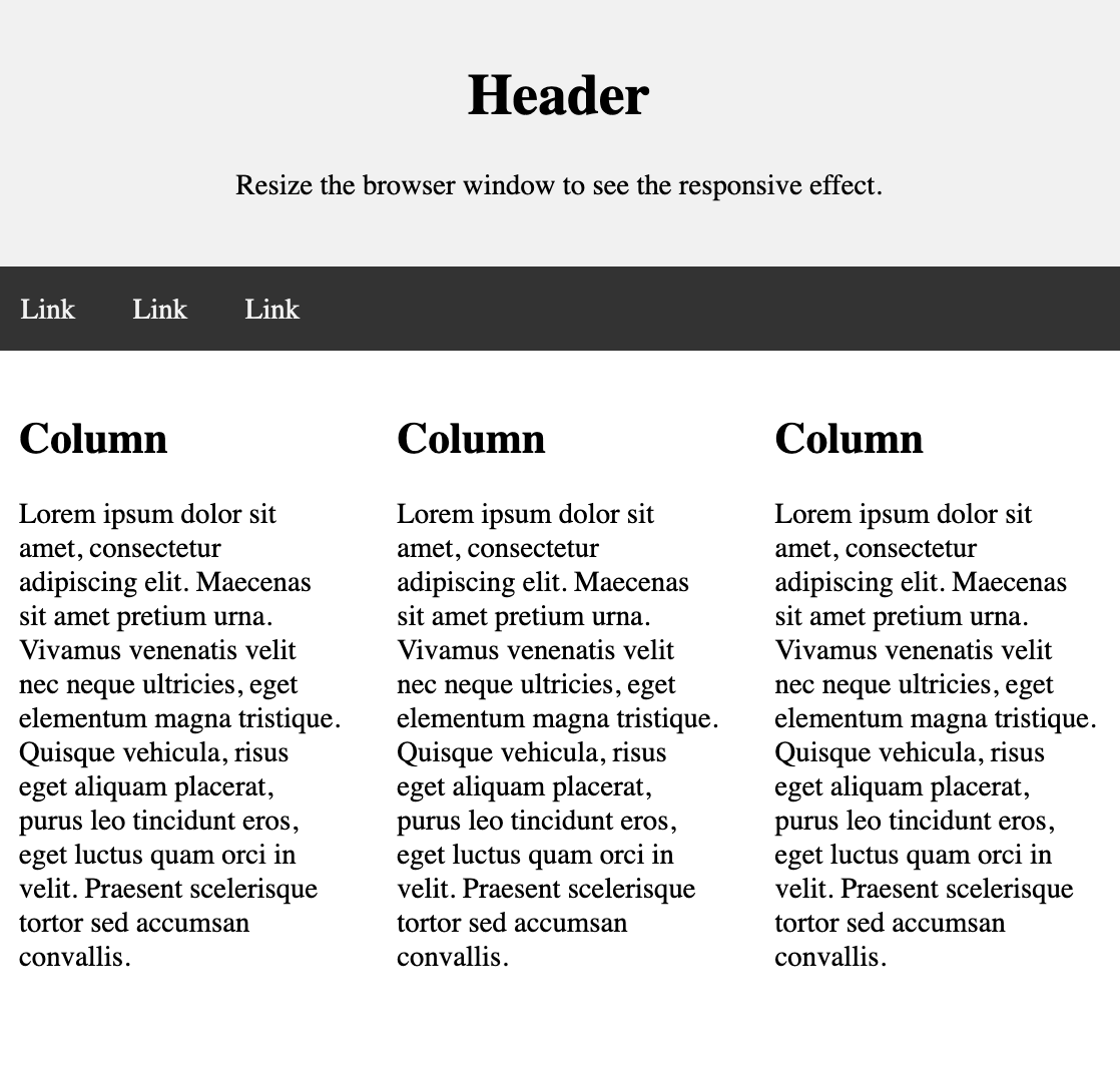 By using some of the CSS code above, we have created a responsive website layout, which varies between two columns and full-width columns depending on screen width: