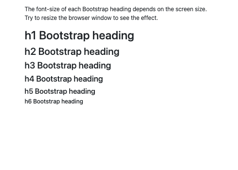 <p>The font-size of each Bootstrap heading depends on the screen size. Try to resize the browser window to see the effect.</p>