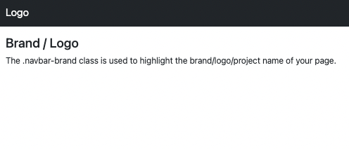 <!DOCTYPE html> <html lang="en"> <head> <title>Bootstrap Example</title> <meta charset="utf-8"> <meta name="viewport" content="width=device-width, initial-scale=1"> <link href="https://cdn.jsdelivr.net/npm/bootstrap@5.1.3/dist/css/bootstrap.min.css" rel="stylesheet"> <script src="https://cdn.jsdelivr.net/npm/bootstrap@5.1.3/dist/js/bootstrap.bundle.min.js"></script> </head> <body> <nav class="navbar navbar-expand-sm bg-dark navbar-dark"> <div class="container-fluid"> <a class="navbar-brand" href="#">Logo</a> </div> </nav> <div class="container-fluid mt-3"> <h3>Brand / Logo</h3> <p>The .navbar-brand class is used to highlight the brand/logo/project name of your page.</p> </div> </body> </html>